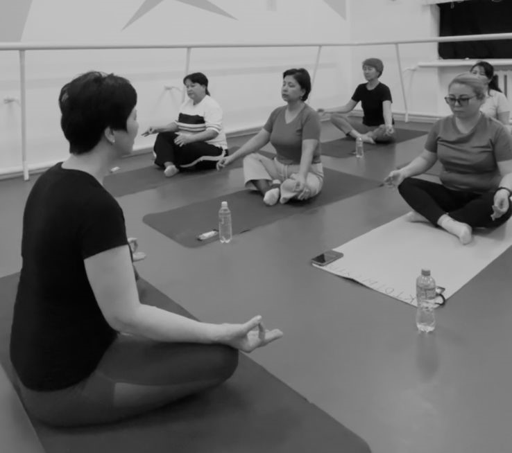 The class was conducted by certified Hatha Yoga trainer M.Zh. Karibzhanova, who professionally explained the principles of proper breathing, muscle relaxation techniques, and ways to achieve inner harmony.