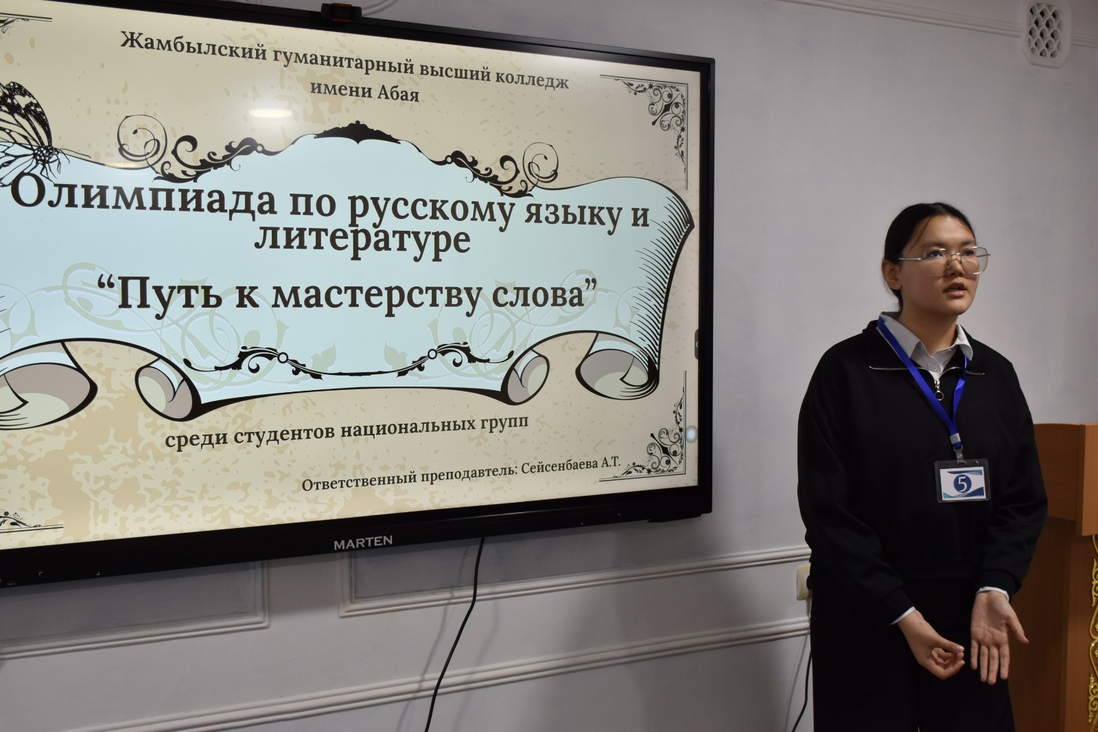 As part of developing students’ linguistic and cultural competence, as well as increasing interest in the rich heritage of Russian literature, the Zhambyl Humanitarian Higher College named after Abai successfully held an academic Olympiad in Russian language and literature for first- and second-year students from groups studying in the state language.