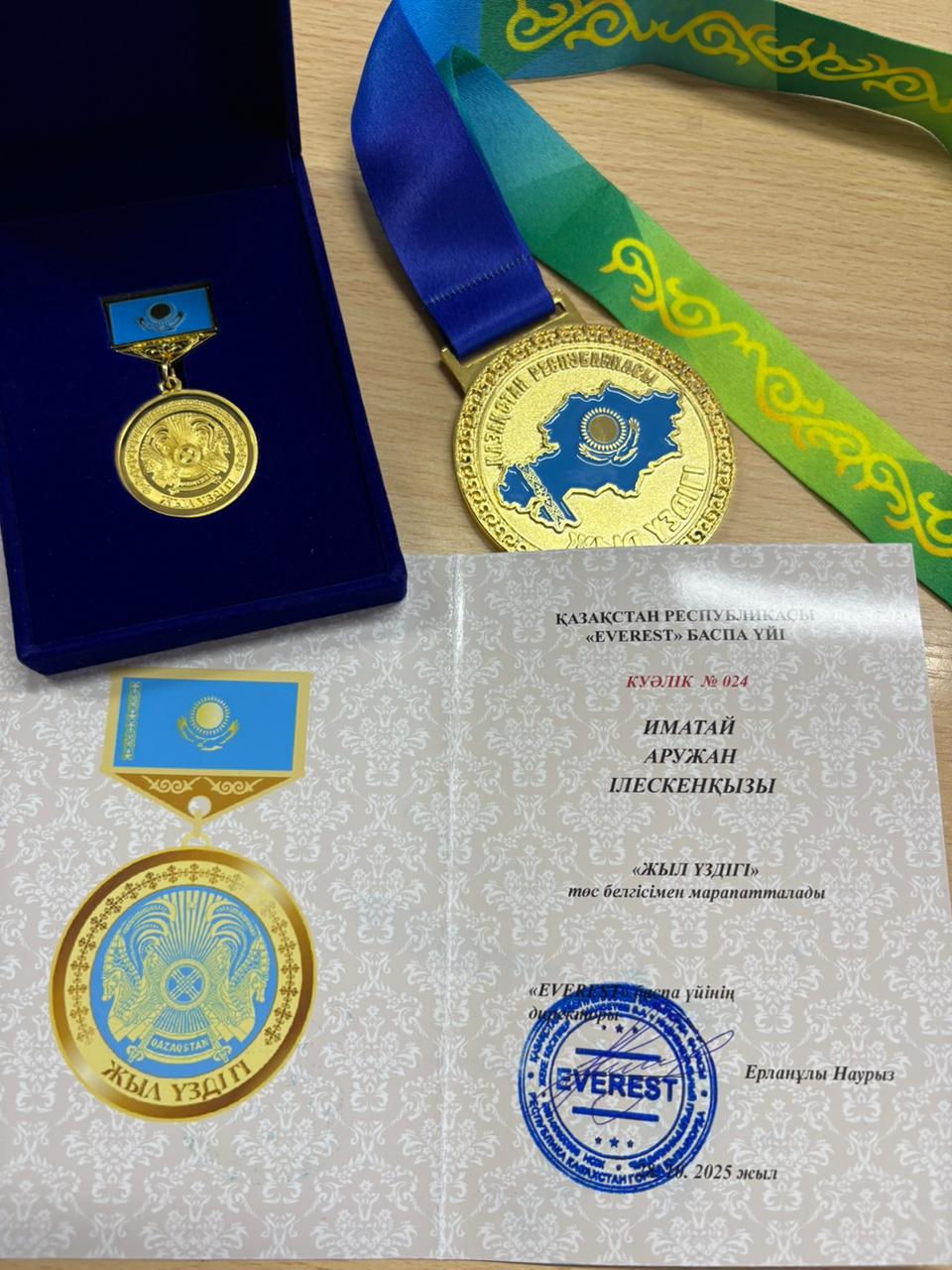 Музыкалық білім беру мамандығының 4-курс студенті Иматай Аружан өз еңбегі мен талантының арқасында Қазақстан Республикасының "EVEREST" баспа үйі тағайындаған "Жыл үздігі" төсбелгісімен марапатталды.